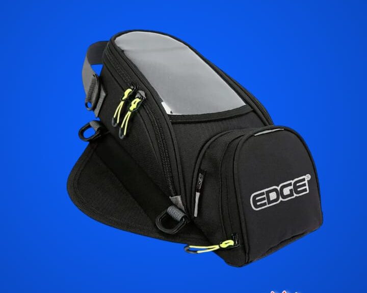 Bolso para tanque de moto, ideal para llevar objetos esenciales con fácil acceso.