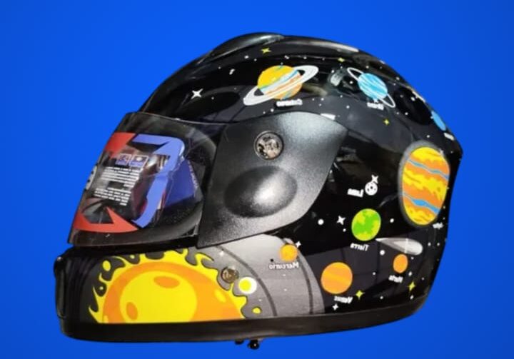 • «¡Un viaje espacial en cada aventura! Este casco integral combina un diseño galáctico vibrante con un acabado brillante. Ideal para niños que buscan comodidad y una protección completa en todo tipo de trayectos.»